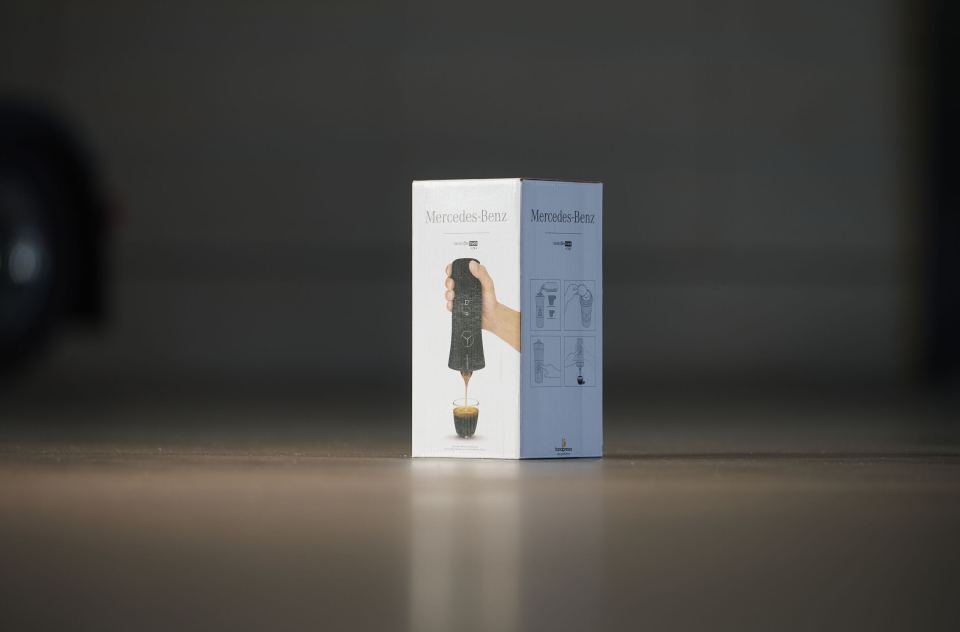 En annen spesiell funksjon er pod-kaffemaskinen i Mercedes-Benz-design som passer inn i kjøretøyets interiør og kan oppbevares i koppholderen takket være den praktiske størrelsen.