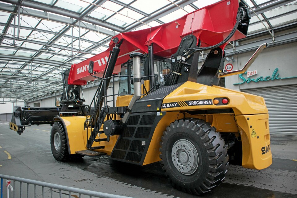 Europeere generelt og kanskje nordmenn spesielt har en naturlig skepsis til «Kina-maskiner». Ifølge Ifoy-testerne er det liten grunn til å være skeptisk til den nye reachstackeren fra kinesiske Sany. Maskinen er utstyrt med innovative systemer som øker effektiviteten med 15 prosent og reduserer drivstoff-forbruket med 20 prosent. Disse besparelsene oppnås i hovedsak gjennom et hybridsystem der to ekstra løftesylindre koblet til akkumulatorer sørger for at energi blir lagret ved senking av bommen. Når bommen løftes igjen er 70kW ekstra kraft tilgjengelig. Så vidt testerne kjenner til er det første gang dette systemet brukes på en reachstacker.