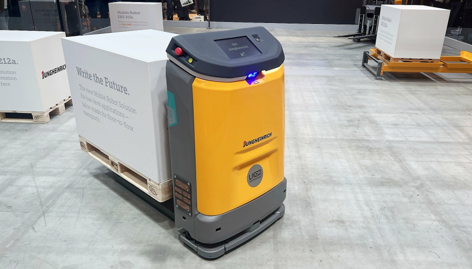 Det hindrer ikke at Jungheinrich viser frem ytterligere automatiserte produkter i år. Hovedrollen på den gigantiske standen i år fikk AMR-en EAE 212a. Dette er en robot som ser ut som en meget snerten liten gaffeltruck, tiltenkt flytting av paller fra A til B.