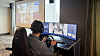 FJERNSTYRT: Ratt, pedaler og spaker. Det kan minne om et simulatorspill på P,. men er fjernstyring av en ekte truck flere mil unna.Foto: Hive Autonomy