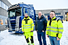 NY HVERDAG: Sjåfør Thomas Skorge (t.v.), selger Ståle Aas og Hans Erik Becker gleder seg til å ta bruk den nye elektriske tippbilen.