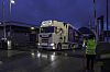 Første lastebil med laks kjører av fergen.Foto: John-Christian Andreassen