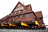 STEINLEGGING: Steinhellene er 12 centimeter tjukke og i varierende bredde og lengde. De tyngste steinene veier rundt 180 kilo hver. Steinleggerne bruker løfteutstyr med vakuum for å få lagt dem på plass.Rogaland fylkeskommune, Øyvind Nesvåg