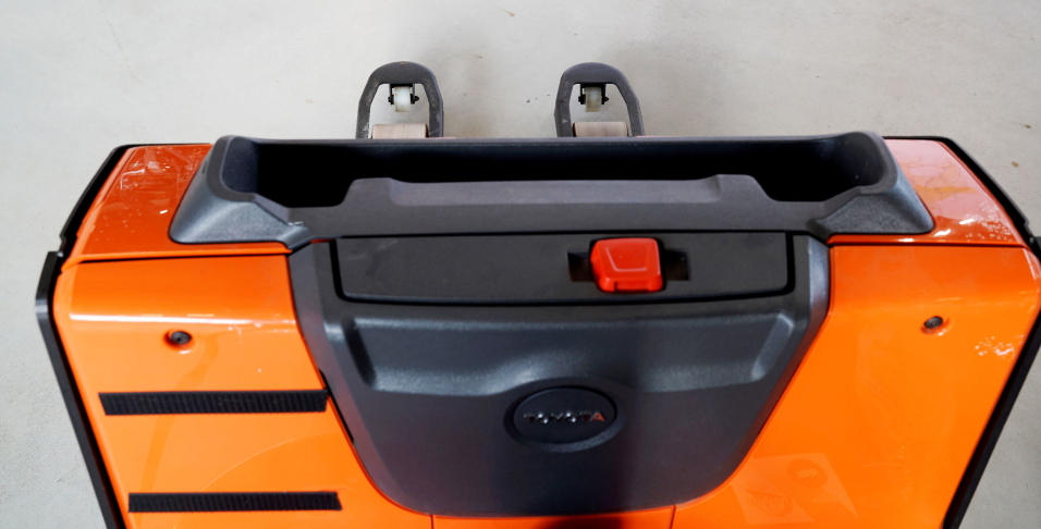 Lydhorn og nødstopp er godt plassert og fungerer korrekt. Den lille, sentralt plasserte skjermen viser batteristatus og operasjonskoder og feilkoder. For eksempel viser skjermen om «Click2Creep»-funksjonen er aktiv. Denne funksjonen gjør det mulig å styre trucken med hendelen i loddrett posisjon, noe som er svært nyttig i trange omgivelser.