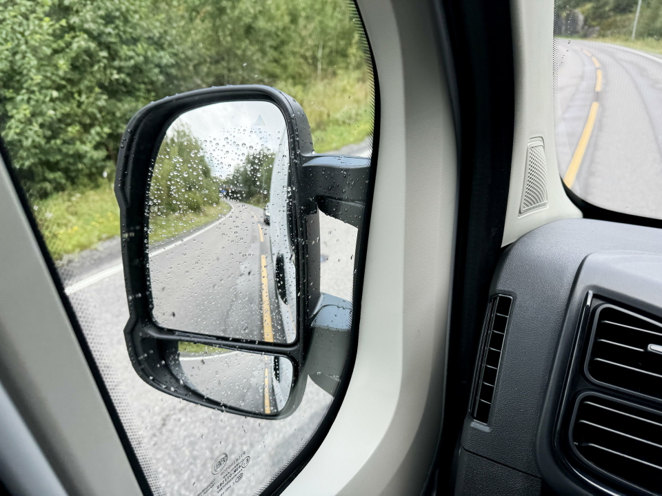 Når det gjelder sikt så er den svært god fremover, men både en bred A-stolpe et stort speil og en forholdsvis kraftig ramme for det todelte frontvinduet gjør at sikten skrått fremover blir noe hindret.