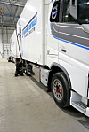 Det er ikke bare en gimmick, for det er viktig med kort ståtid for lastebileiere. Her kan det kjøres inn et modulvogntog på 25,25 meter og en semi bak samtidig, i begge løp, legges det til. 16 hjul kan skiftes på pluss-minus en time, inkludert omlegg med balansering og selve hjulskiftet, med fire mann.