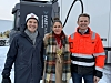 ÅPNET: 10. desember åpnet ladestasjonen for tungbiler på Gol døgnhvileplass. Daglig leder i Fastcharge, Paal Berg, ordfører i Gol Heidi Granli og seksjonssjef Tomas Moen i Statens vegvesen deltok på åpningsmarkeringen.Foto: Kyrre Riksen / Fastcharge AS